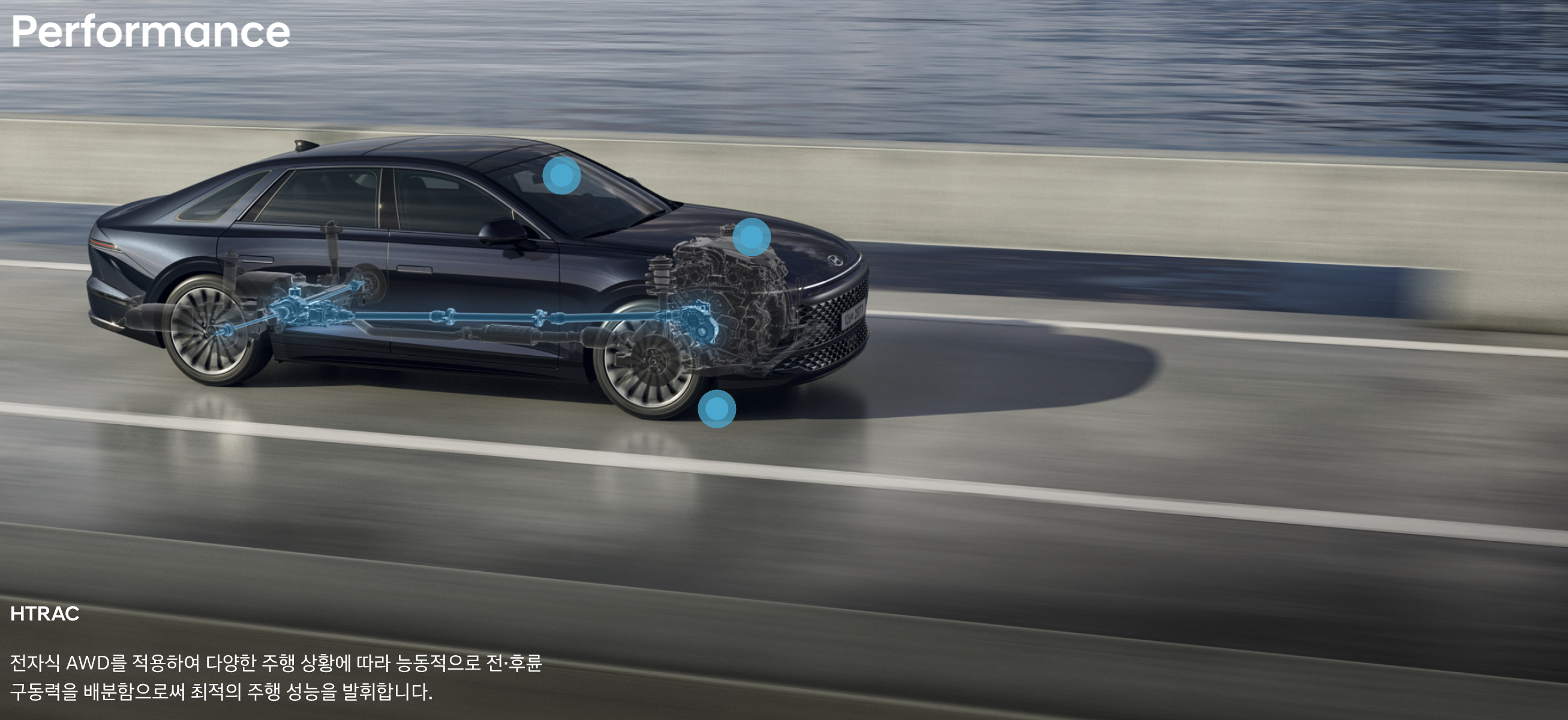 전자식 AWD를 적용하여 다양한 주행 상황에 따라 능동적으로 전·후륜 구동력을 배분함으로써 최적의 주행 성능을 발휘합니다.