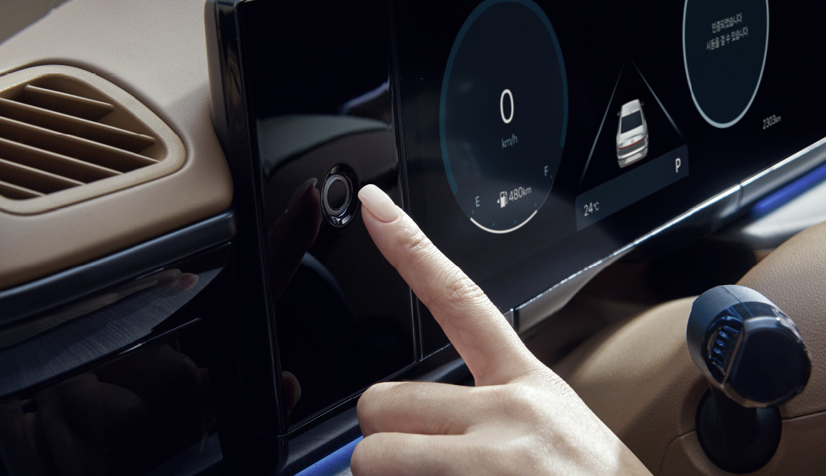 차량 내 간편 결제나 발레 모드 해제 시 필요한 인증 기능을 수행하고 지문 인식만으로 차량의 시동과 주행이 가능합니다.
