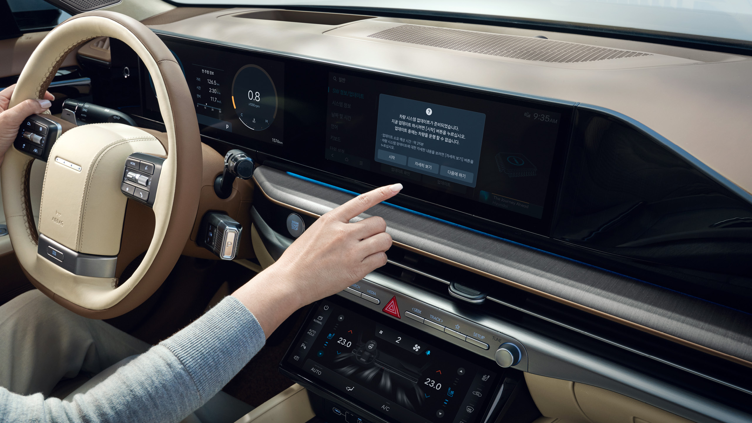 무선 소프트웨어 업데이트를 통해 별도의 서비스 센터 방문 없이도 차량의 주요 전자제어장치에 대한 업데이트가 가능합니다. (인포테인먼트 시스템, 서스펜션, 브레이크, 스티어링 휠, 첨단 운전자 보조 시스템 등)