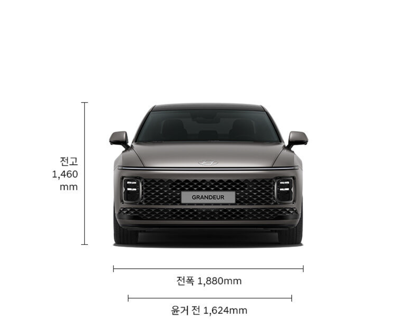 2025 그랜저의 경우, 전고 1,460mm 전폭 1,880mm 전장 5,035mm 입니다.