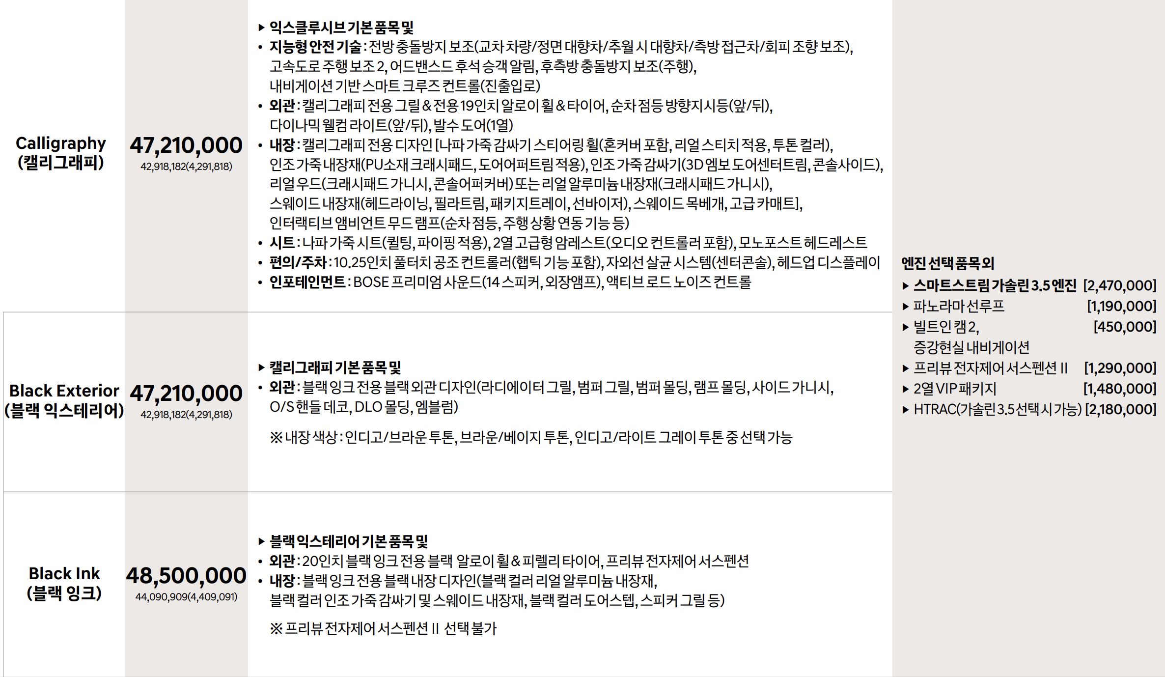 본 게시물에 차량 정보를 최대한 많이 담았지만, 어떤 종류의 어떤 트림을 선택하고 어떤 옵션을 넣느냐에 따라 차량은 천차만별로 달라지기 마련입니다.