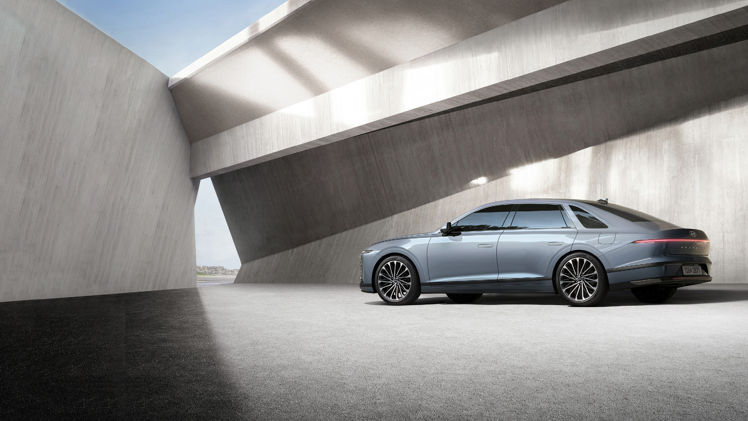 아름다운 비례 위에 매끈하게 다듬어진 면과 미래지향적인 수평형 램프 디자인을 더해 플래그십 세단의 고급스러움과 존재감을 완성하였고,